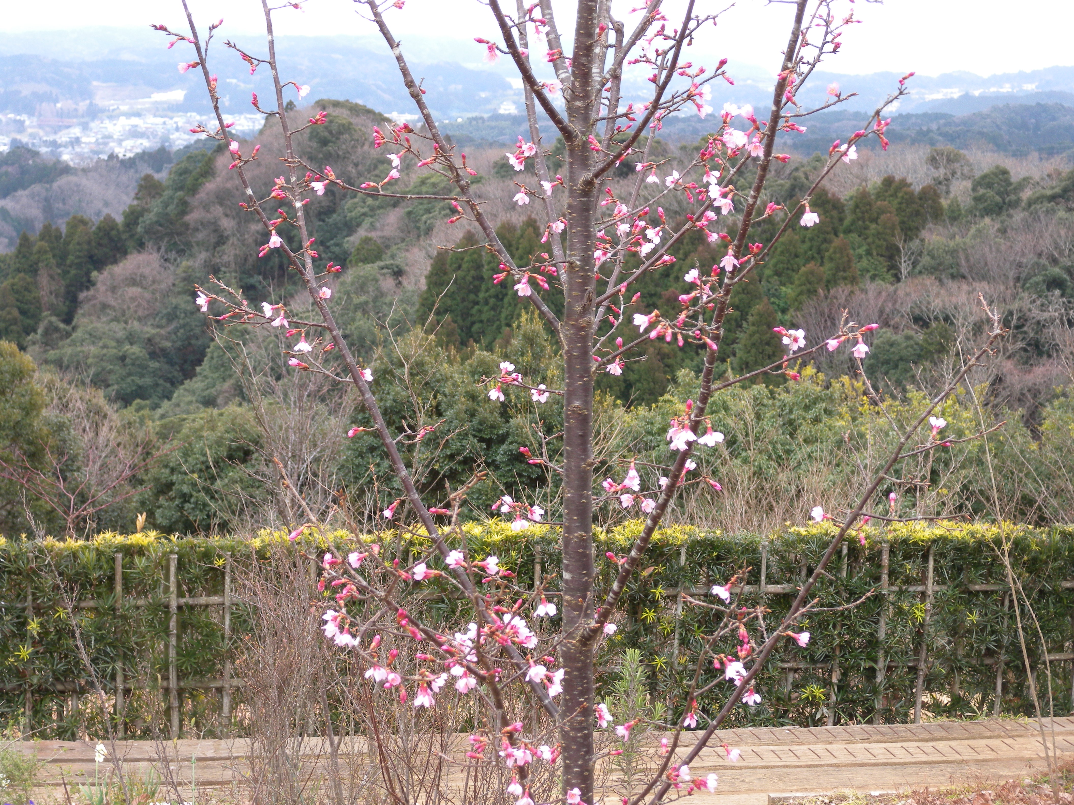薄緑色の葉桜を見る事が出来るのは残念ながらほんの数週間です。現在、河津桜に代わってオカメ桜が咲き始めました。小さな花びらの桜ですがとても可憐な色合いです。霊園の土手にはフキノトウも沢山芽を出し始めました。子供の頃は苦い味が苦手でした。