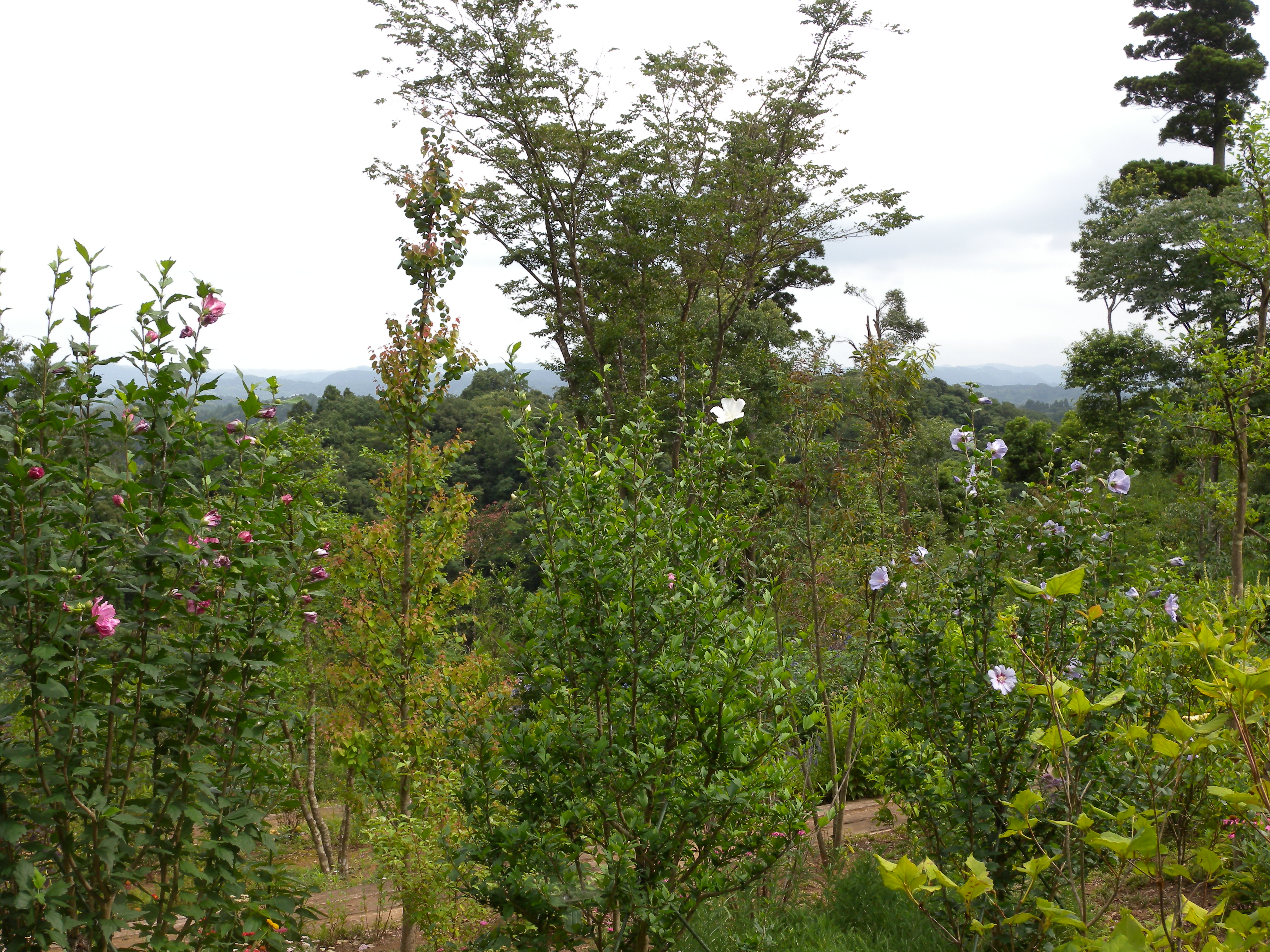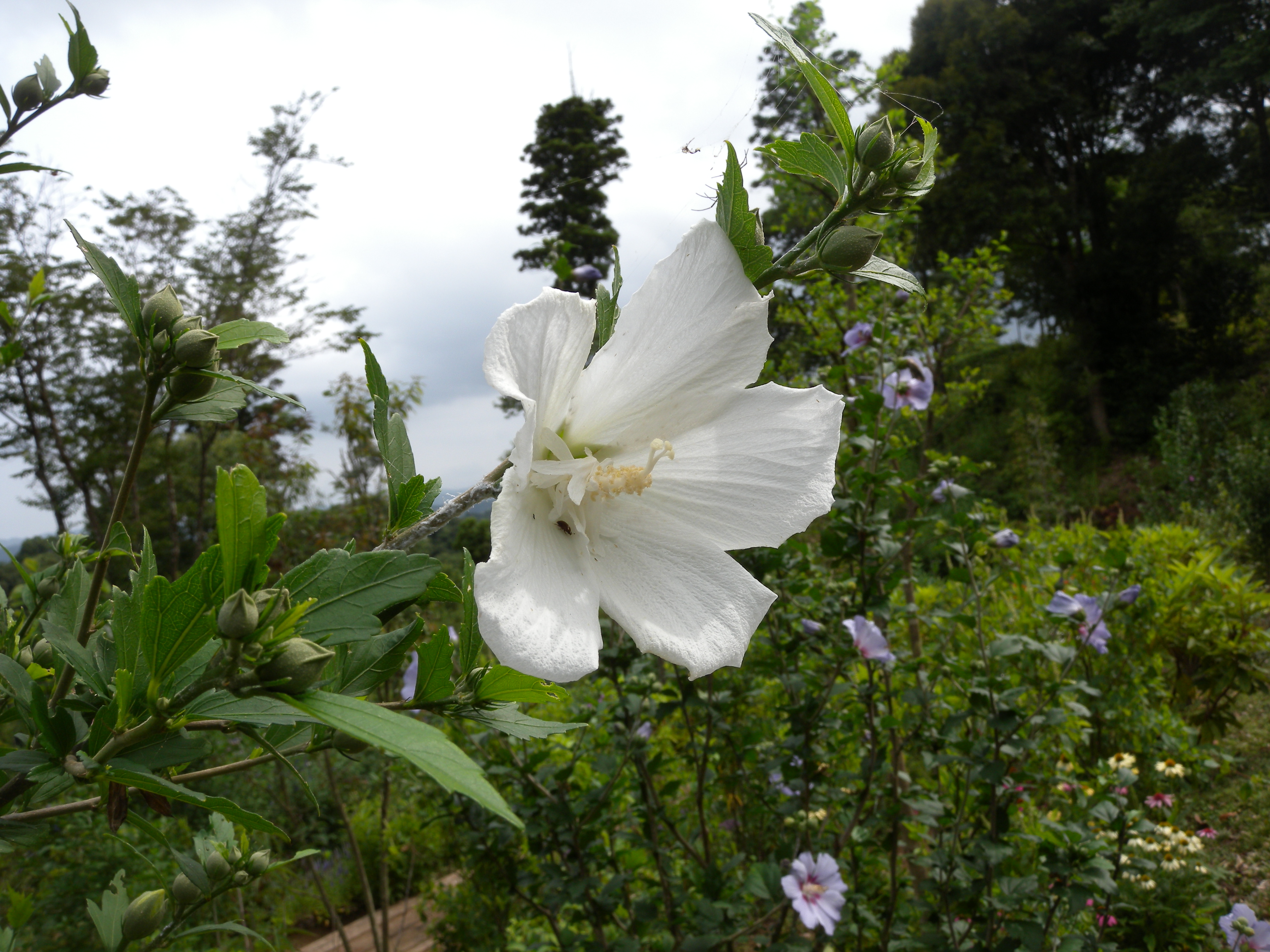 前回は、夏の花と言えばエキナセアを思い出しますと書きましたが、夏の花と言えばムクゲの花もその代表ではないでしょうか。樹木葬園内でも夏の終わりごろまで咲き続けます。花色も白、ピンク、紫等豊富にあります。