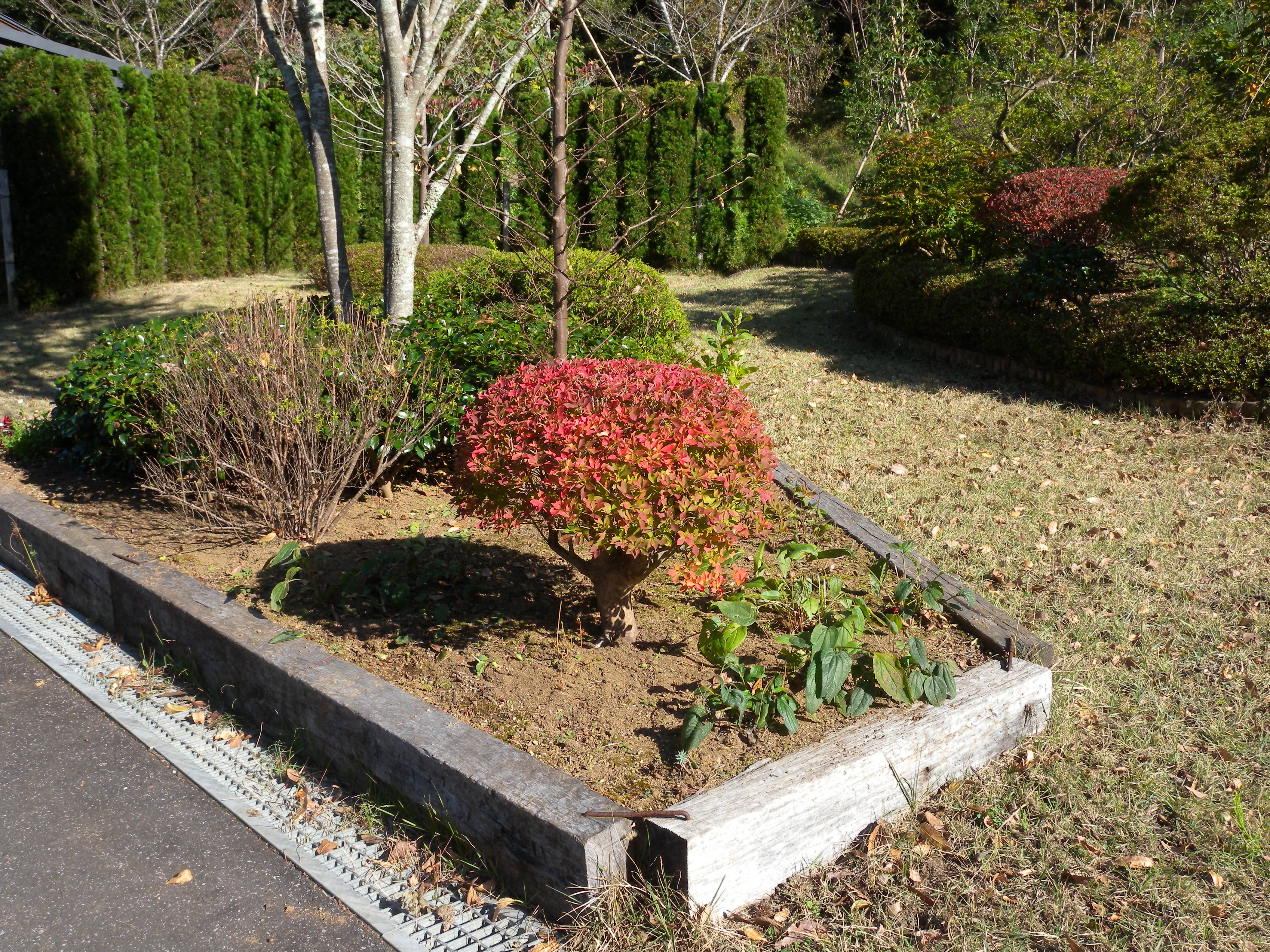 霊園内のいたるところに自生しています。日当たりや土の中の水分の関係かもしれませんが、紅葉しているものと全くしていないものがあります。また、所々に植えてあるドウダンツツジは毎年綺麗に紅葉しますが、今年も段々と紅葉し始めました。