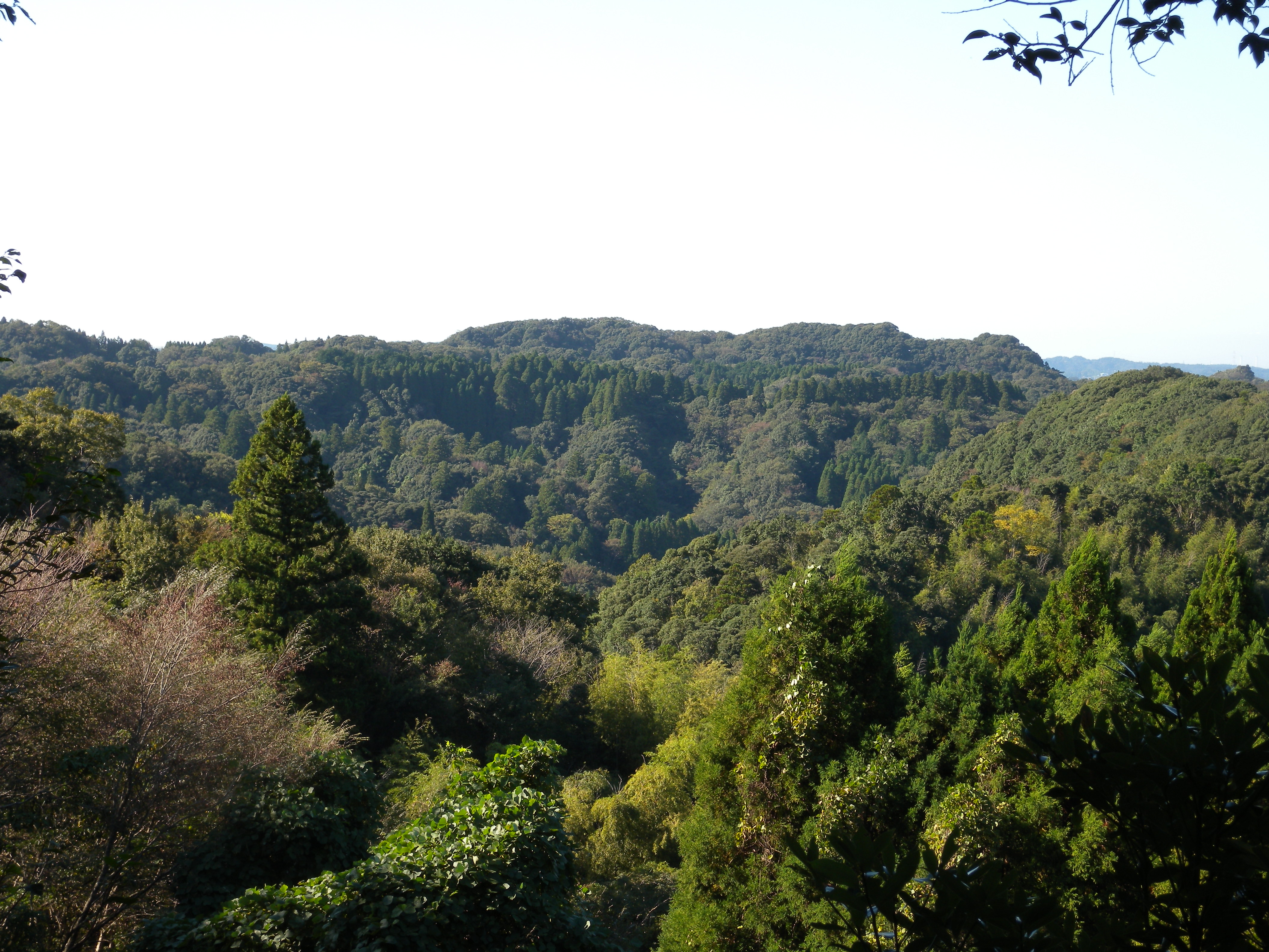 ドウダンツツジは、よほど日当たりが悪くないかぎり綺麗に紅葉します。霊園から見える山々はまだ緑色で紅葉する様子はありません。例年ですと12月初旬頃が紅葉のピークで、その頃になると山々の木々は赤や黄色に変わります。