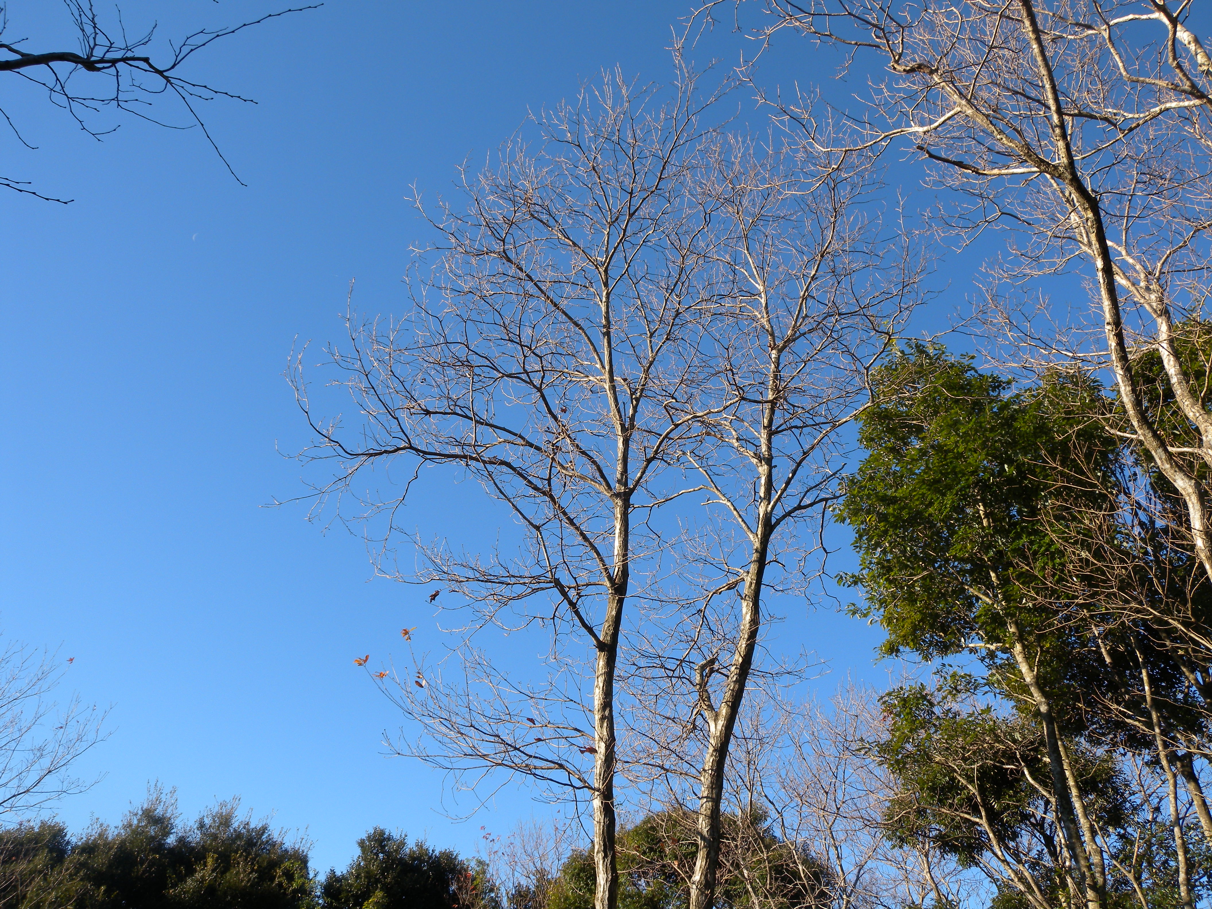 青空を背景にして見ると木々の枝の細かい所まで見えてとても美しく感じます。また、木々の樹皮を良く見ることが出来るので樹皮の模様や色を観察することが出来て、種類によって全く違うことが良くわかります。