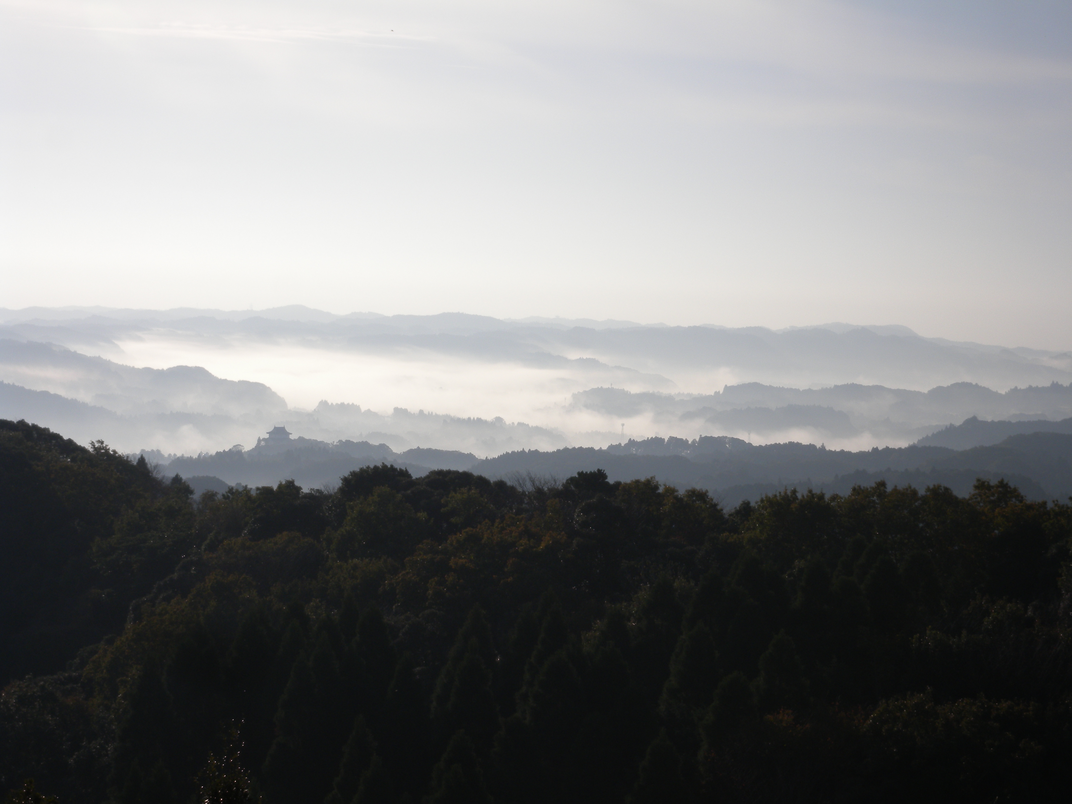 今日の霧は今一歩と言ったところでしょうか。もう少し濃い霧の時の方が全体的に墨絵のような風景となり山並みももっと綺麗なように感じます。大多喜城のシルエットはよく見えましたが、全体的にちょっと薄い霧でした。
