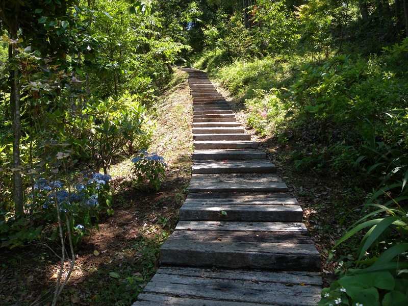 駐車場から霊園までを枕木で道にいたしました。その周りには四季折々の草花が植えられており、季節を感じて頂けると思います。ぜひ、1度お歩き頂けると幸いです。