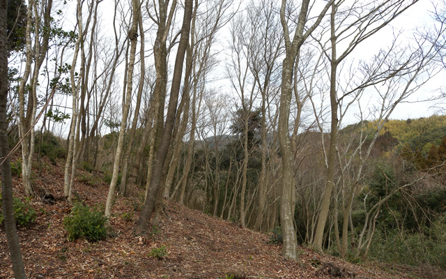 所々にコンクリート製の土止めや舗装された道があります。区画内についても、山の表土をはがして芝生やリュウノヒゲを植えました。山の表土は何百年もかけて微生物が落ち葉や朽木を分解して出来上がったものです。表土をはがした後に人の手を加えても元どおりになりません。ですから霊園内の一部は人口的に作られたいわば不自然なものです。ただし、区画や道になっている部分は、広大な面積の樹木葬霊園内のほんの一部です。園内の大部分は、条例上、緑地帯として残さなければならない為、ほとんどの部分は、昔からあった里山となっています。緑地部分の樹木のほとんどが株立ちになっているのは、昔、炭焼きのために伐採した木々が成長したからです。里山型の樹木葬霊園を作ることは、後世に里山を残す有効な手段だと思いますが問題点もあります。以前にブログで書きましたが、お墓として利用している限りにおいては、必要以上に人の出入りがあります。あくまでも昔の里山や生物多様性を重視するならば、下草等を管理する時以外には人があまり出入りしない区域が必要だと思います。いくら人工物を作らずに霊園を作ったとしても、お参り等で必要以上に人が出入りしたならば、ゴルフ場等の開発とあまり変わらないと思います。市原南霊園では、区画と歩道以外の場所の立ち入りを禁止しています。園内の緑地帯もそうですが、霊園に隣接する山の一部も下草刈りを行い、普段はほとんど人の入らない場所を設けています。また、霊園の一番奥深い場所は、昔から伐採されていないためシイやカシの大木がある極相林となっている部分もあります。樹木葬霊園を作った為に一部は、人口的な山となりましたが、一部は昔の里山の姿を取り戻すことができました。これで、私が霊園を作った目的の一つが達成できました。